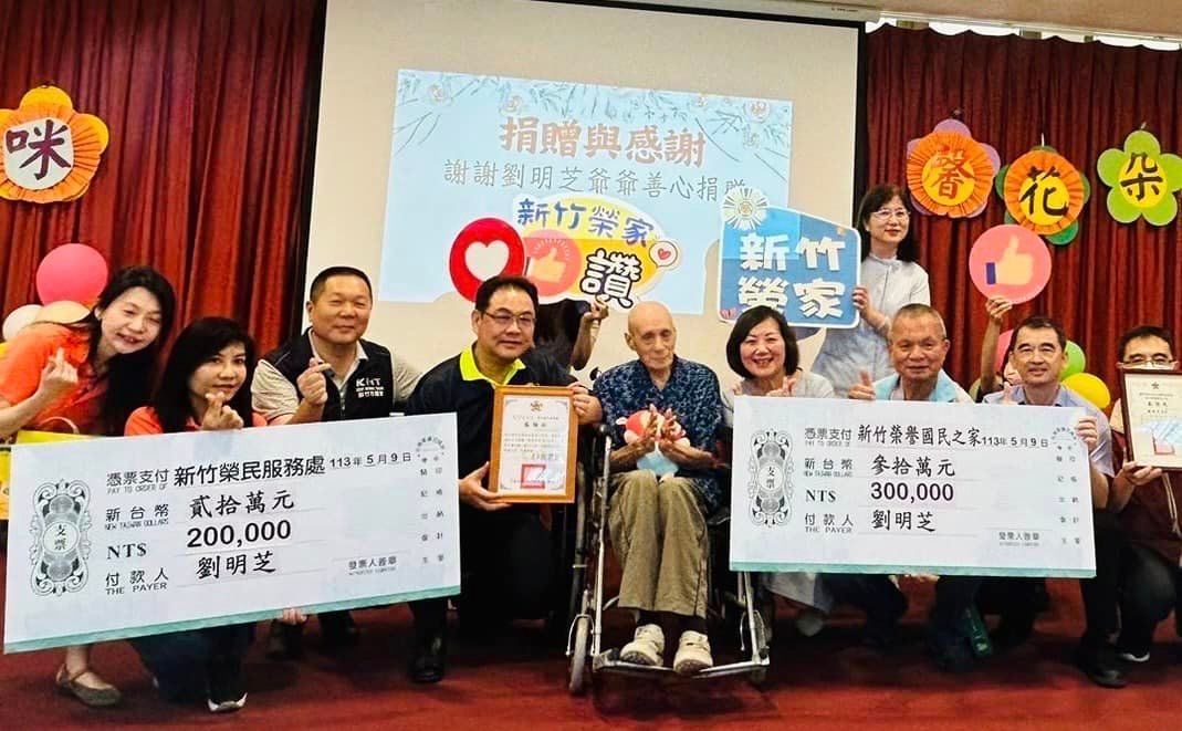 新竹榮民之家主任白恩惠表示,劉明芝爺爺2019年間入住新竹榮家,2020年時將名下的房屋出售,並將所得的700萬元捐出,用來照顧同袍遺孤,自己則是領著微薄的就養金度日。這5年間劉明芝爺爺從就養金存下50萬元,又全數捐出,將其中30萬元用來提升榮家生活設備,另外的20萬元用來照顧榮民遺孤、支持遺孤學子就學。
