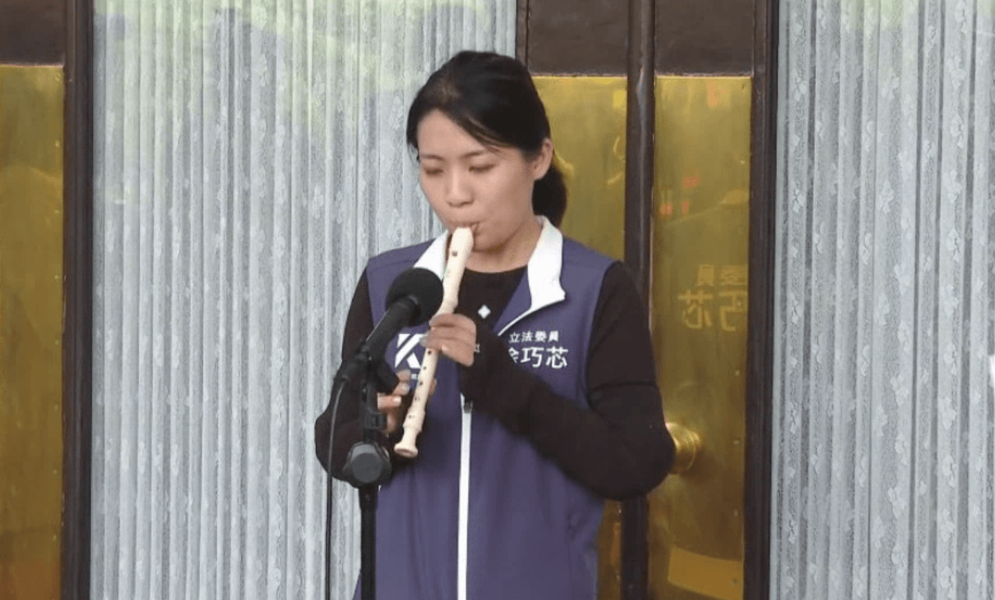今(17日)民進黨、國民黨立委爆發肢體衝突,議場開門後藍營立委占領主席台,徐巧芯還拿出直笛開始演奏,吹奏〈國歌〉、〈國旗歌〉,不過期間不斷破音,讓現場一片靜默,徐巧芯表示自己吹奏樂器「陶冶大家身心靈」。