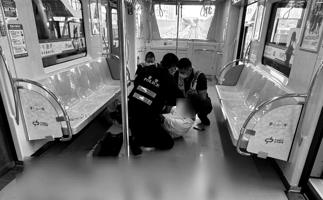 警方在列車到站後,進入車廂逮捕嫌犯,洪嫌當時獨自一人呈大字形躺在滿是血跡的車廂中,他穿著的白色上衣也沾到血跡,警方認為他有自傷、傷人之虞,將他上銬管束,警方帶著洪男前往出口時,洪男突然情緒失控大吼,「你為什麼要這樣?」「我會坐」等,警方見狀趕緊安撫洪男情緒,要洪男先坐下來冷靜,後續洪男被送醫救治,目前犯案動機仍待調查。