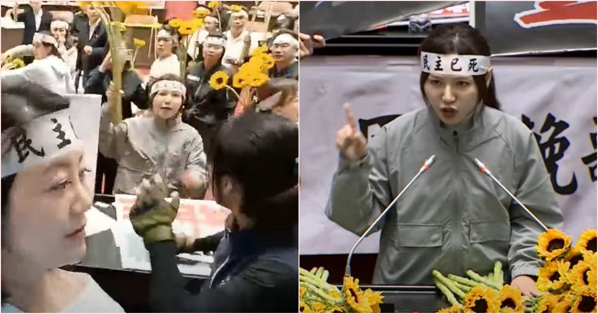 立法院今(21日)晚間繼續針對國會改革法案進行表決大戰,晚餐時間休息過後,民進黨黨團人手一支太陽花,在議場高唱「太陽花學運」的主題曲〈島嶼天光〉,並對著正在開直播的民眾黨立委黃國昌叫囂,期間綠委吳思瑤向黃獻上太陽花遭拒收,吳沛憶則直接將手中的太陽花朝他丟擲。