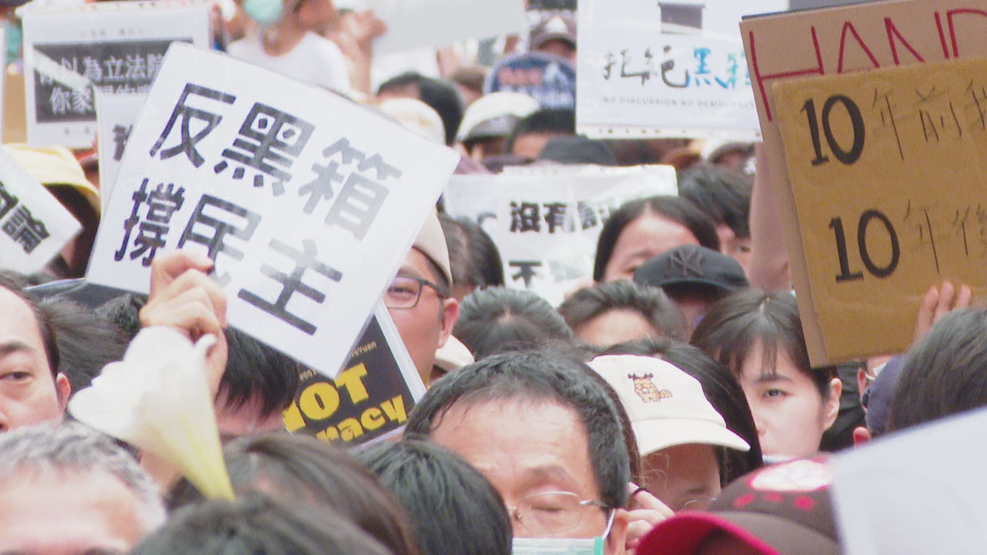 據主辦單位統計,立院周遭已湧入超過五萬人,青島東路已沒有空間,濟南路、忠孝西路等也是滿滿的人,雖然有下雨,但民眾仍穿著雨衣,高喊「台灣加油」、「我藐視黑箱的國會」、「民主被踐踏、立院變人大」等口號。