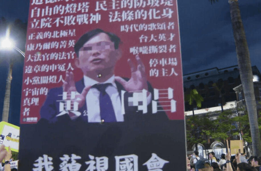 立法院24日續審國會職權法案,當日民間團體發起「我藐視國會」全台串聯行動,吸引10萬名民眾聚集立院外響應,許多民眾更自製黃國昌的黑白照片,甚至布置靈堂、高舉「葱師表」狂酸黃國昌,社群上也掀起討論。