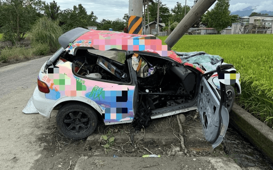 今(26日)賽事再度傳出意外,一輛白色彩繪車身賽車,行經關山鎮溪埔路124之5號時,突然失控撞上路邊電線桿,電線桿當場斷裂傾斜、車身也嚴重變形,可見力道之大,救護人員趕到後緊急將50歲駕駛林男、46歲副駕駛朱男送往醫院治療,可惜林男仍傷重不治,朱男則有輕微腦震盪、但意識清醒。