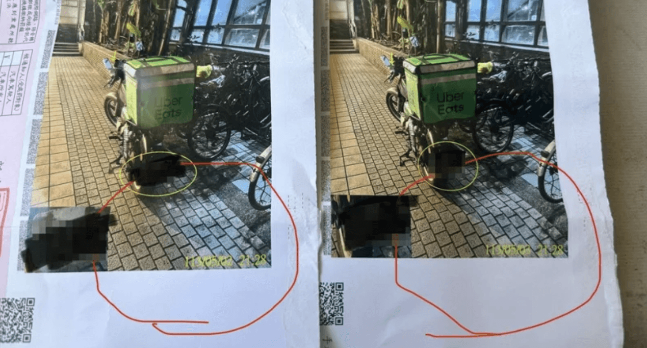 一名外送員在臉書爆料公社發文,表示近日收到一張罰單,但上方同一張舉發的照片,卻顯示不同日期,仔細一看地板磁磚明顯變形,照片還有被修圖過的痕跡,讓他不禁質疑「這樣的警務人員算不算偽造文書呢,這樣的罰單到底要繳還是不繳呢?警務人員這樣做知法犯法,還能相信警務人員嗎?」