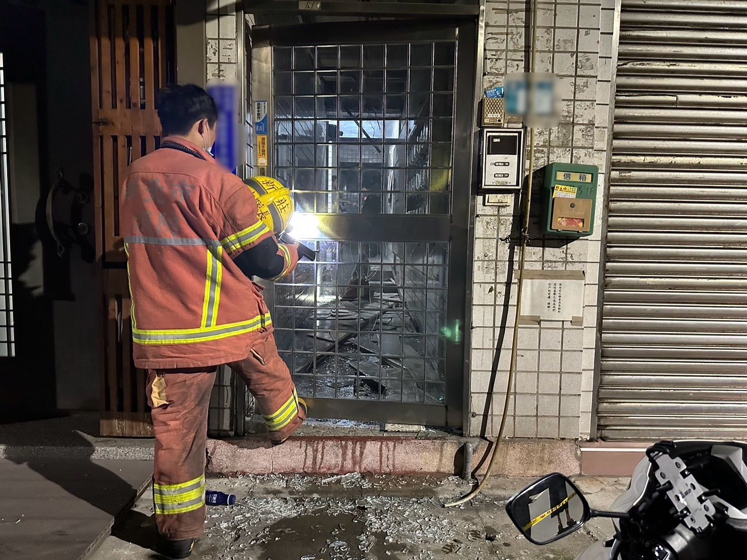 昨(30日)深夜快12點,白衣男子形跡可疑,在新莊一處民宅附近徘徊,下一秒男子突然出手,朝大門投擲物品,隨後一陣火光伴隨巨響,玻璃門當場被碎裂還冒出陣陣白煙,住戶睡夢中驚醒立刻報案,消防抵達現場先灑水處置,只見一樓大門被炸毀,玻璃碎片滿地,走廊地板被燒得一片焦黑,天花板都掉了下來,幸好爆炸沒有造成任何傷亡。