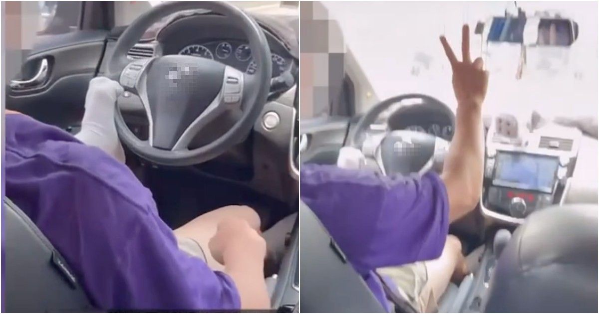 近日有一段影片在社群瘋傳,畫面中一名身穿紫色上衣的男子,坐在汽車駕駛座上開車,沿著台中市台灣大道二段行駛,不過仔細一看,男子的雙手根本沒有握住方向盤,僅以「左腳」操控方向盤,途中右手還比出「YA」的手勢。