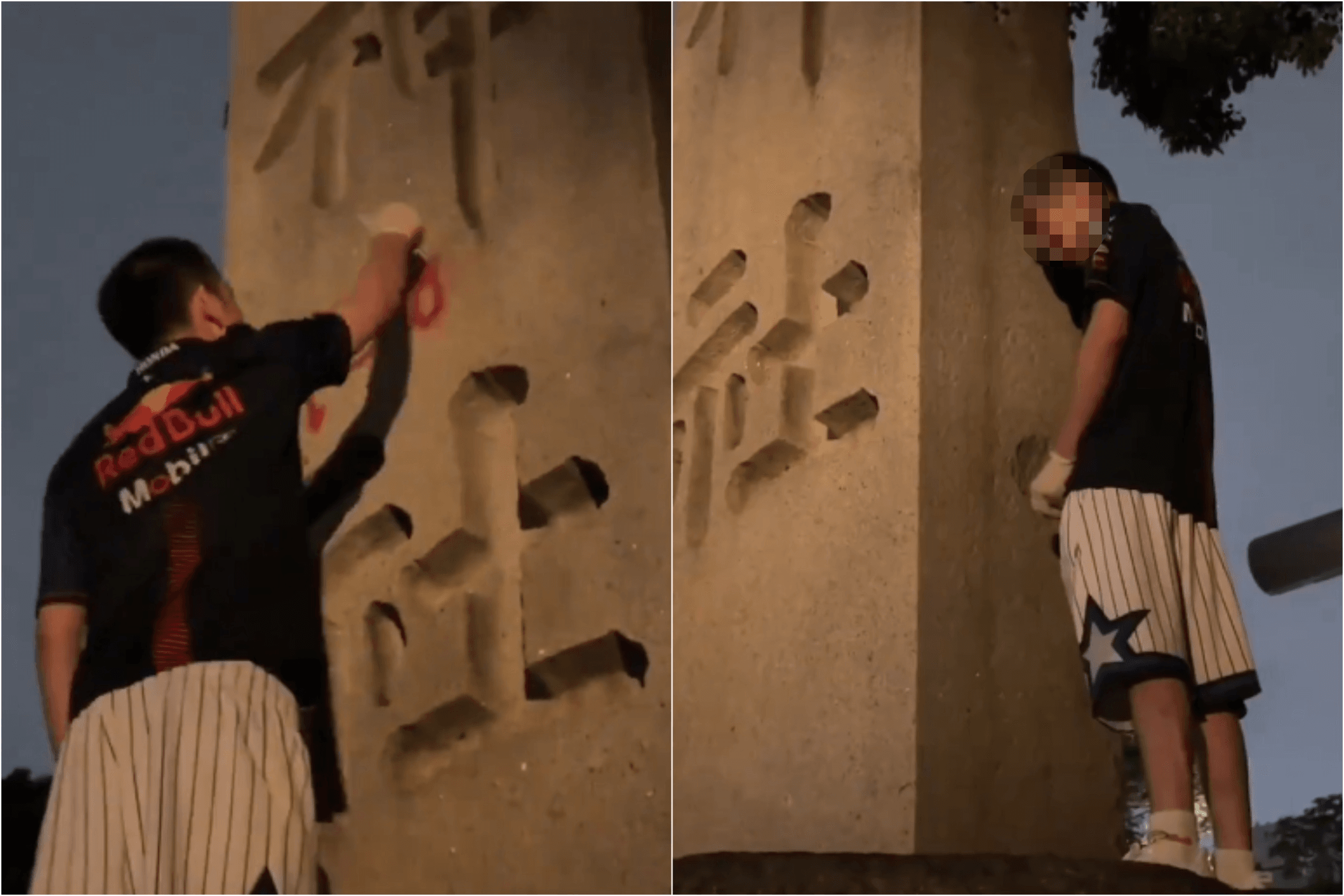 案發後小紅書出現一段影片,中國網紅「鐵頭」上傳自己破壞靖國神社石柱的影片,只見他爬上石柱,脫褲撒尿,還噴紅漆寫上「Toilet」(廁所),更開嗆:「面對日本政府允許排放核廢水,難道我們什麼都做不了?不,我會給他們一點顏色瞧瞧。」