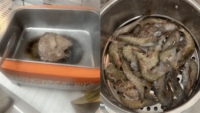 臉書粉專「靠北7-11」一篇匿名投稿中,發文者用戲謔語氣說:「做大夜做到一半肚子餓了怎辦呢?就是要吃牛排啦!」並附上成品照片,一塊牛肉躺在加熱滷味的鍋子,冒出陣陣白煙,肉塊附近的鍋子明顯焦黑。另外還有另一篇投稿也表示「半夜肚子餓只好煮一下」,這次則是用地瓜專用電鍋蒸蝦子的照片,只見蝦子還帶著殼、未完全退冰,數量之多,讓人懷疑現場不只一人。