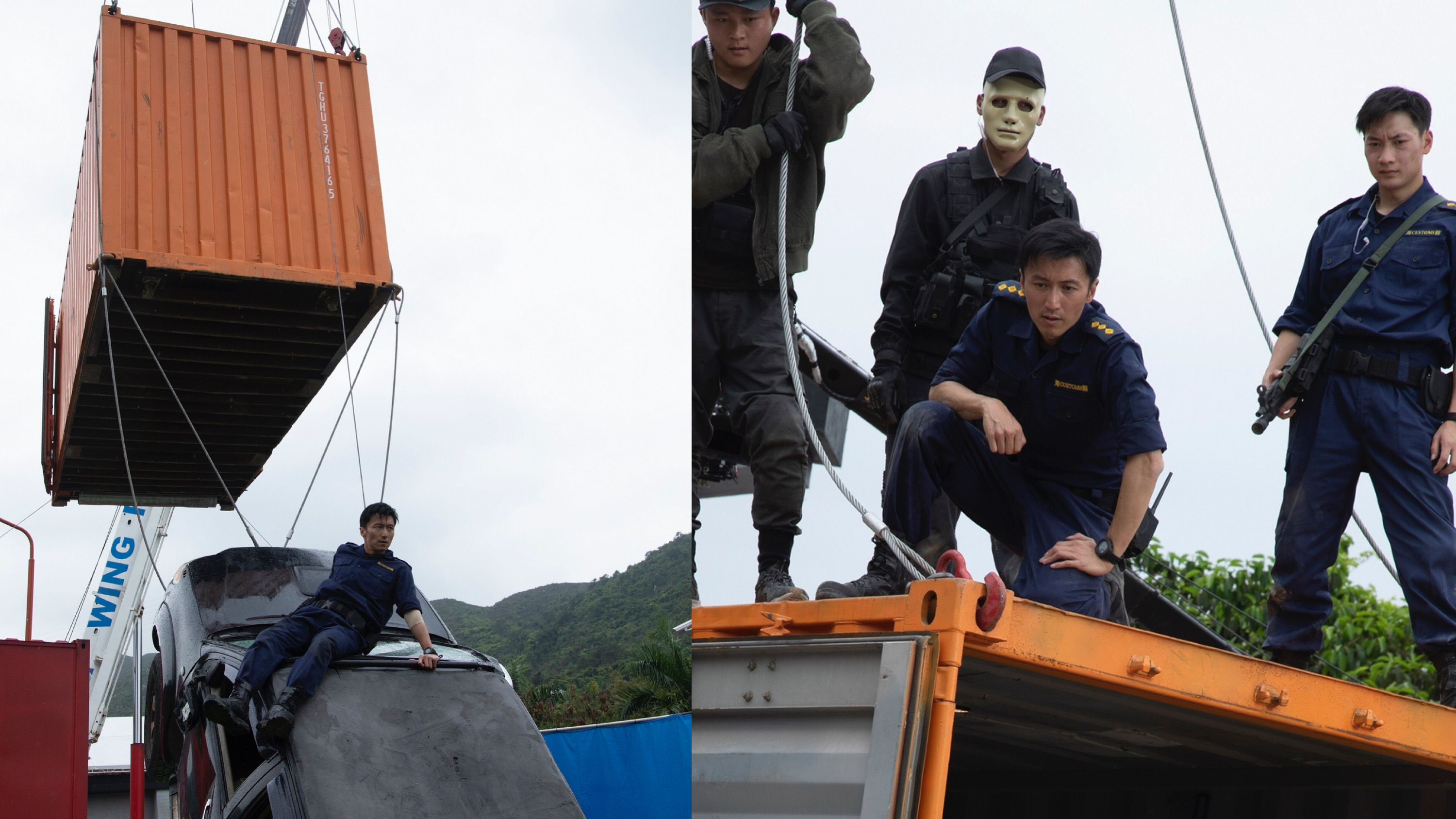 拍攝當日的第一個鏡頭,便是謝霆鋒吊鋼絲跳爬到被高高吊起的貨櫃上,只要有一點不滿意,他便會再重新拍攝,他透露雖然身上藏有防護墊,「但偏偏都是撞到沒有防護的地方啊!」而這場槍戰還有一個危險元素,拍攝當天竟下起雨了,讓鐵皮貨櫃變得很濕滑,而謝霆鋒要完成一個非常困難的動作,就是要從在高空中被吊成傾斜超過45度的貨櫃上,翻一個筋斗再跌出貨櫃,危險系數極高,拍攝時眾人連大氣都不敢多呼一口,屏息以待,但謝霆鋒展現靈活身手,從高空一路翻下來,順利完成拍攝,一共拍了三次便讓導演邱禮濤滿意喊OK,謝霆鋒笑說:「我盡自己最大的努力做出最快捷的身手,但要跟我一起上去的攝影師更緊張,他要拍我的臉,必需跟著我一起向下滑,還要好好抓住機器,不然攝影機就會直接砸在我的臉上了。」