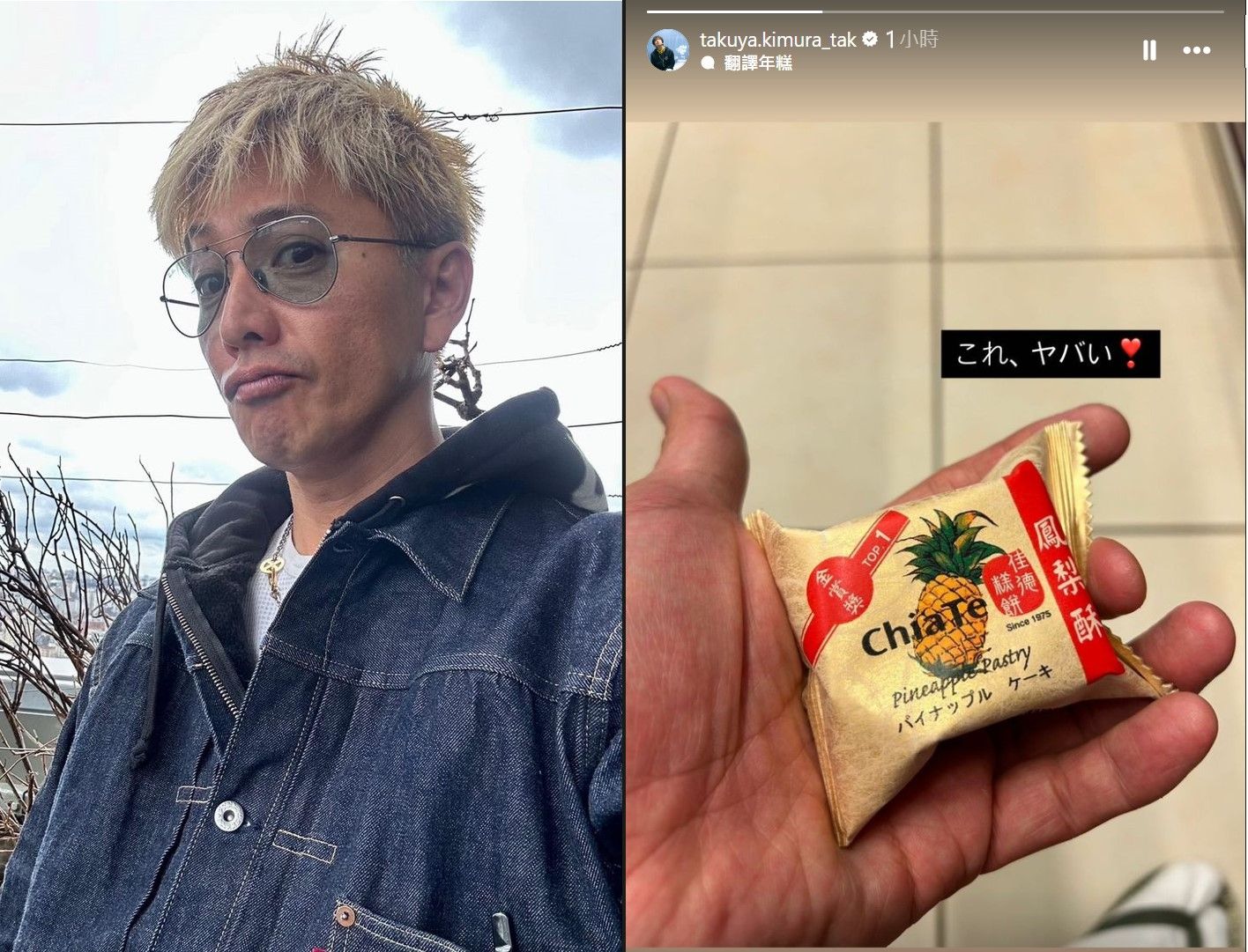 日本天王木村拓哉曾多次喊出愛台灣,每次來台都要拎回大量伴手禮,木村拓哉今(22日)隨手上傳IG限動,炫耀他得到的台灣名產,並告白這顆鳳梨酥實在太美味。