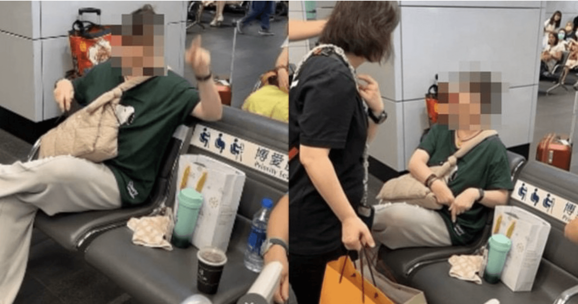 一名香港網友在Threads貼出一段影片,畫面中可見一名婦人坐在博愛座上,並用環保杯、提袋等雜物佔用身旁另一個博愛座,面對一旁身穿藍上衣的男子提醒「你不能放東西」、「這是給人坐的」,婦人一秒牙起來回嗆「笑死人,不能放東西,你哪一條法律有規定不能放東西,中華民國憲法哪一條規定博愛座不能放東西,你也可以拿來放阿」。