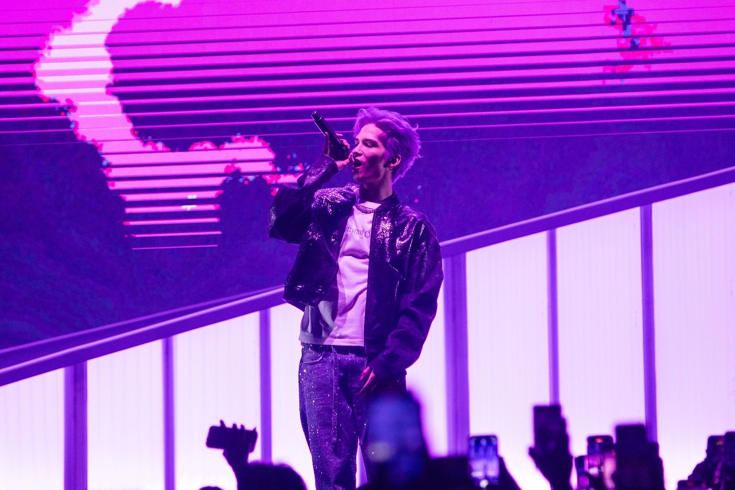 派偉俊更一連唱了三首搖滾勁歌〈Sweet Dreams〉 、〈蝴蝶〉、〈最後一次心碎〉,掀起全場粉絲尖叫合唱,難掩興奮的他開心大喊:「這場演唱會我等了八年!」聽到有女粉絲對他大喊說要「嫁給你」,派偉俊笑著表示:「我現在往台下看,看到好多男生朋友、女生朋友,大概有九成的女生、一成的男生!前天我在Threads看到有人說我跟國中生交往,在這邊我鄭重澄清我是單身!我真的單身太久了,所以都寫一堆心碎的歌。」