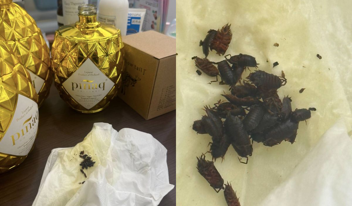 台中市議員黃守達表示,民眾今(5日)天向他陳情,指日前在美式大賣場購買數瓶利口酒,昨(5日)其中一瓶喝到快見底時,發現一大坨疑似小蟑螂的蟲,民眾因而噁心、嘔吐不止,甚至吐到有血絲,就醫後被診斷出腸胃發炎。