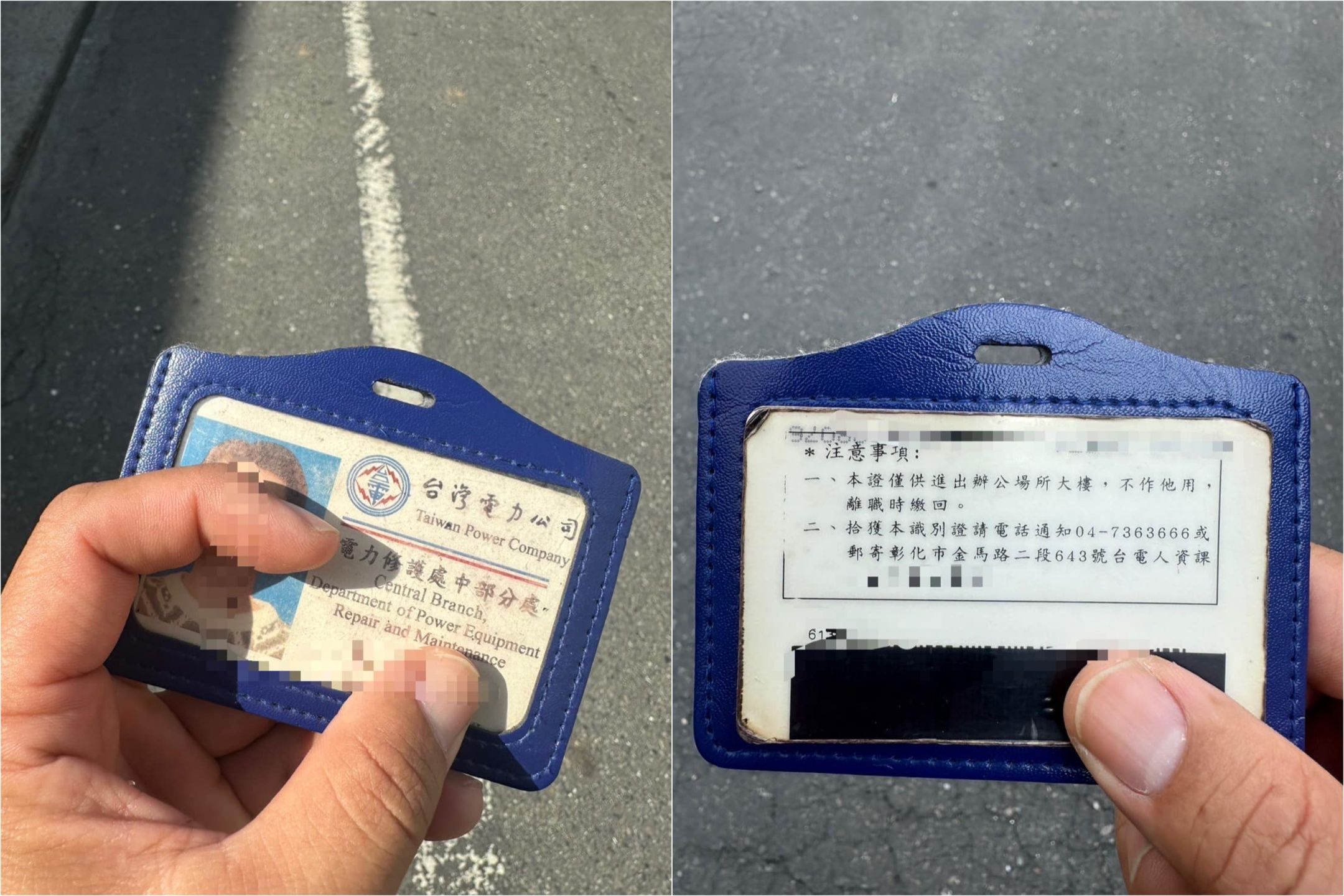 陳男在臉書社團「爆料公社二社」發文表示,3日晚間在路邊撿到一張「台電電力修護處中部分處」的員工證別證,他發現證件背後寫著「拾獲本識別證可致電通知」,他撥通後向對方表示打算送哪個派出所,請對方通知同仁領回,不料對方竟要求陳男寄回,還稱郵資才十幾元,要陳男自行負擔。