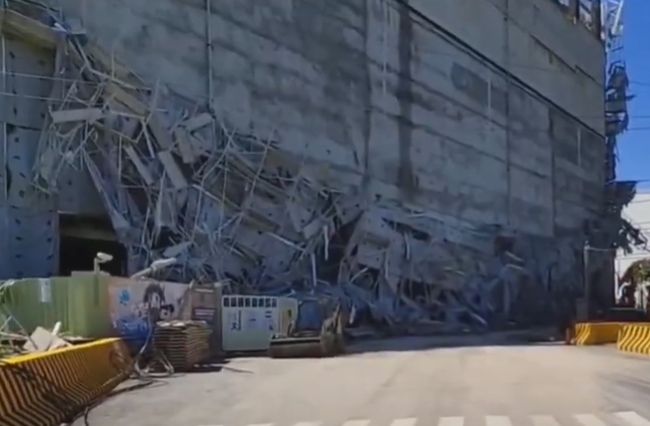 雲林福懋科技公司斗六河南街的新建廠房,昨疑似因為不敵強風,大片鷹架瞬間倒塌,造成2死3傷。事發後現場出動怪手進行清理,只剩部分殘留鷹架未拆除,今天(7日)檢察官到工地現勘時,鷹架殘件竟二次倒塌,所幸未造成人員傷亡。