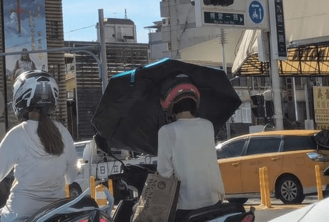 近日有網友在臉書社團「路上觀察學院」貼出一張照片,畫面中一名女騎士在博愛一路、九如二路口停等紅燈,因天氣實在太熱,於是拿出陽傘擋太陽,原PO表示「找不到陰影,只好自備,有確認她在綠燈前就收傘」。 照片曝光引發一票網友共鳴,「高雄常見,無論雨天或大熱天,都有人騎機車撐傘」、「90秒路口確實有這想法」、「真的需要啊!太熱了」、「紅綠燈秒數超久」、「這種不妨礙別人 比找陰影停在路中央的好太多了」。 對此,警方表示,騎車撐傘是危險行為,然而目前《道路交通管理處罰條例》對此行為無明確規範,不過若是因此導致事故發生,恐涉嫌違反《道路交通管理處罰條例》第43條危險駕駛,可處6000元至3萬6000元罰鍰,並當場禁止其駕駛、吊銷駕駛執照及吊扣牌照6個月。