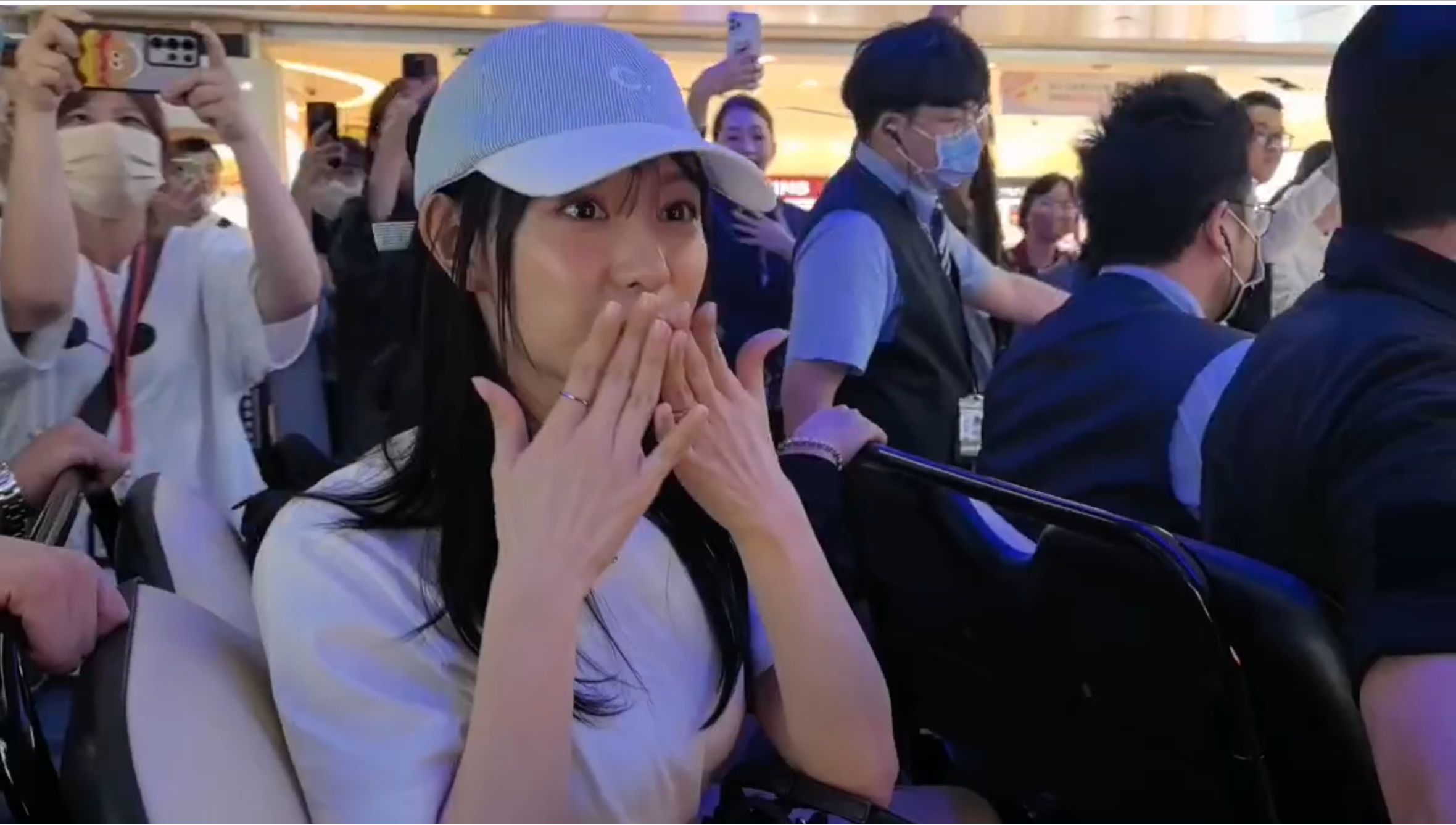 韓劇女神金智媛今(20日)晚搭機抵台,為明天在Zepp New Taipei舉行的見面會做準備,人氣超旺的金智媛,一下機就吸引粉絲拿著粉絲搶拍,頻頻喊她「歐膩(韓文:姊姊)~歐膩~」,金智媛也接連比出臉頰愛心等pose,甚至送上飛吻。而寵粉的金智媛,也特地現身桃園機場第二航廈大廳,與前來接機的上百名粉絲打招呼,金智媛看到大廳擠滿到場接機的粉絲,甚至連2樓都有追星人潮,頻頻露出驚訝表情,更加熱情地對粉絲比出超萌表情,供粉絲拍照留念,十分親民。