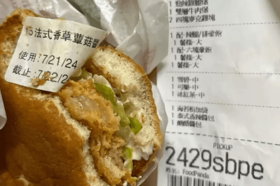 南投一名賴姓男子昨(21日)於臉書社團「南投人聊天室2.0」發文指出,20日晚間11時許,他用外送平台向麥當勞訂購韓牛魷魚堡、勁辣雞腿堡、雙層牛肉堡、4塊麥克雞塊、腿排、薯條及飲料,吃到一半時卻發現漢堡中夾著一張標籤紙,讓他氣得質疑「請問一下現在食安事件是大爆發?麥當勞南崗店,勁辣雞腿堡裡面夾雜法式香草蕈菇醬的標籤,連鎖品牌不用把關的?」