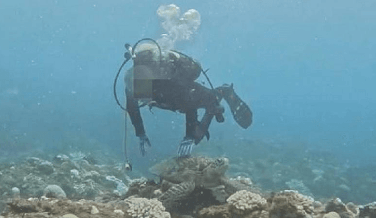 這起事件發生在墾丁,一名男性潛水客在合界岸際潛水時看到一隻海龜,靠近後忍不住伸手觸摸,事發過程全被同行潛水客拍下,南部分署第六岸巡隊昨(21日)根據民眾提供的影片循線過濾查訪,鎖定該名潛水客,事後男子也坦承犯行,其行為已違反《野生動物保育法》第18條,後續將被移送至屏東地方檢察署偵辦。