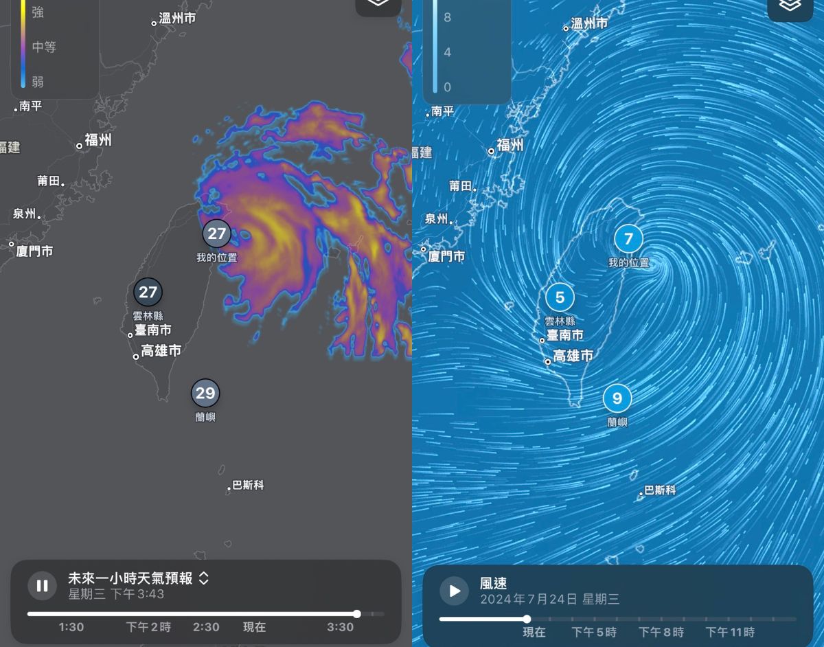 「凱米」今早升級為強颱,東台灣首當其衝,中央氣象署預測,「凱米」將在今晚至深夜間在宜蘭、花蓮登陸,民眾相當關心颱風動向,其實iPhone用戶可以透過內建的「天氣」App,不用開電視就能隨時查看颱風動向、風速,非iPhone用戶則可透過Google Maps一手掌握。