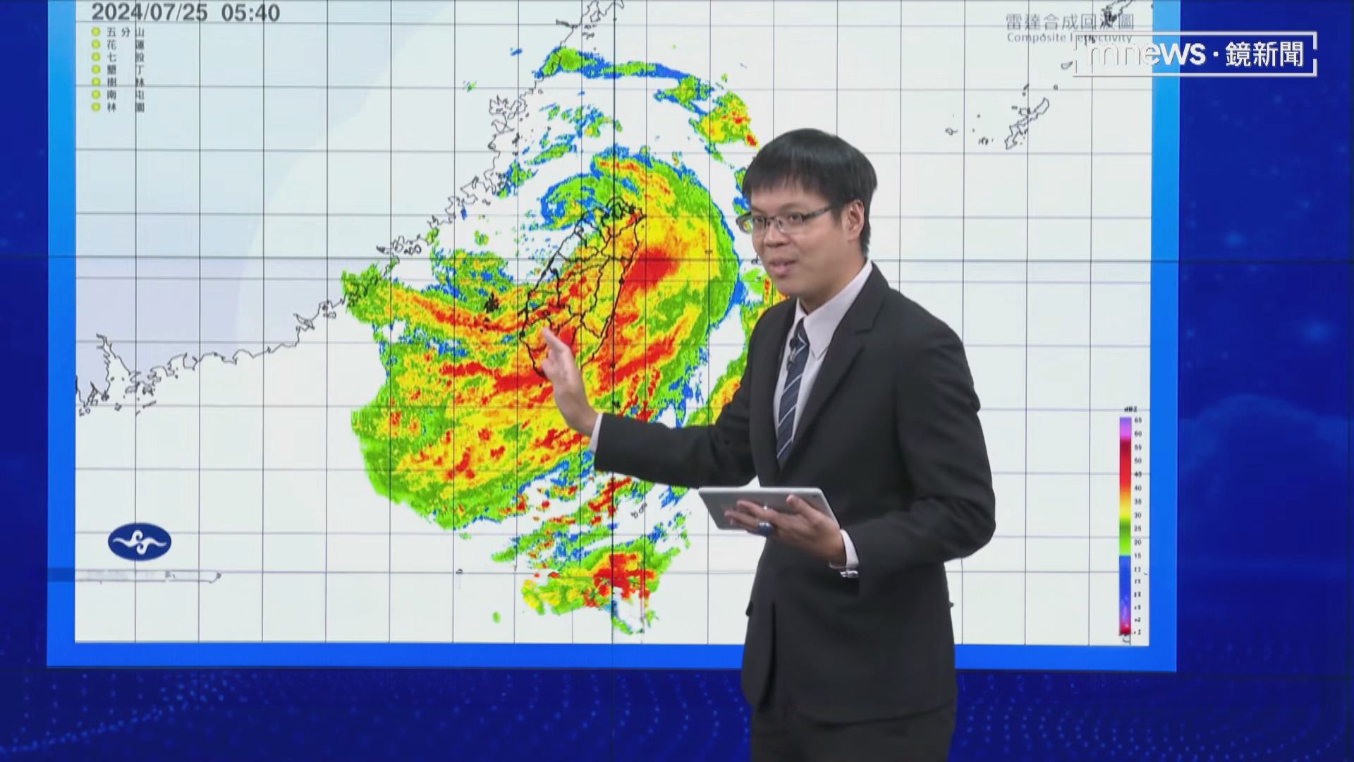 中央氣象署預報員劉宇其表示,凱米颱風明(26日)逐漸遠離台灣,但是西南風帶來的水氣還是相當多,所以中南部還是有局部性大雨或豪雨發生。降雨時間相當長,民眾務必留意颱風降雨可能導致的災害。