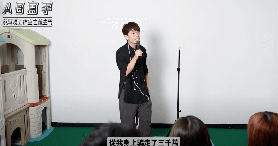 蔡阿嘎7日新影片模仿泰爾娛樂的招牌單元「狗屎寫手」,上台講脫口秀,他以蘿拉事件寫成「地獄段子」自嘲,幕後的工作人員大頭佛說一句,蔡阿嘎就跟著說一句,一開頭就談到自己人生遭逢「巨騙」,大頭佛說前員工從他身上騙走上千萬,不過蔡阿嘎脫口而出「前員工從我身上騙走了3千萬」,意外揭露蘿拉詐騙的總金額。