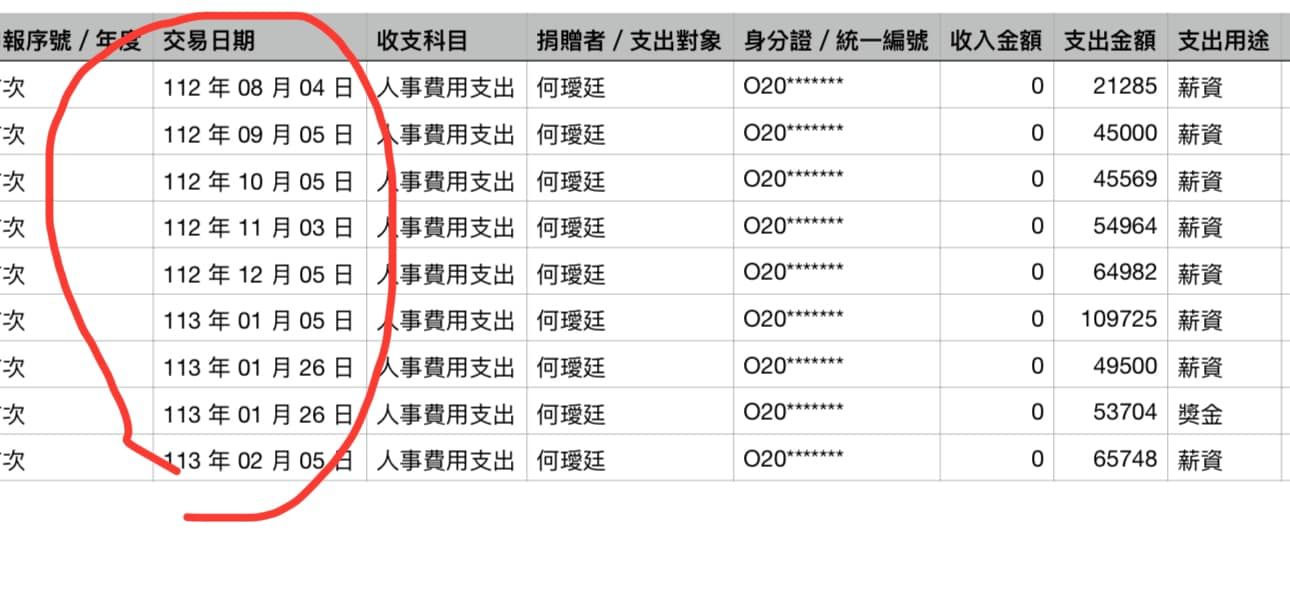林延鳳指出,從柯文哲政治獻金申報的支出資料發現,木可員工何璦廷從去年8月到今年2月間,一共領了9筆薪資(應為8筆薪資、1筆獎金),總金額共51萬477元,且每月薪資都不一樣,一個月甚至最高能領到10萬多元,且選戰結束後2月份還在領薪水。