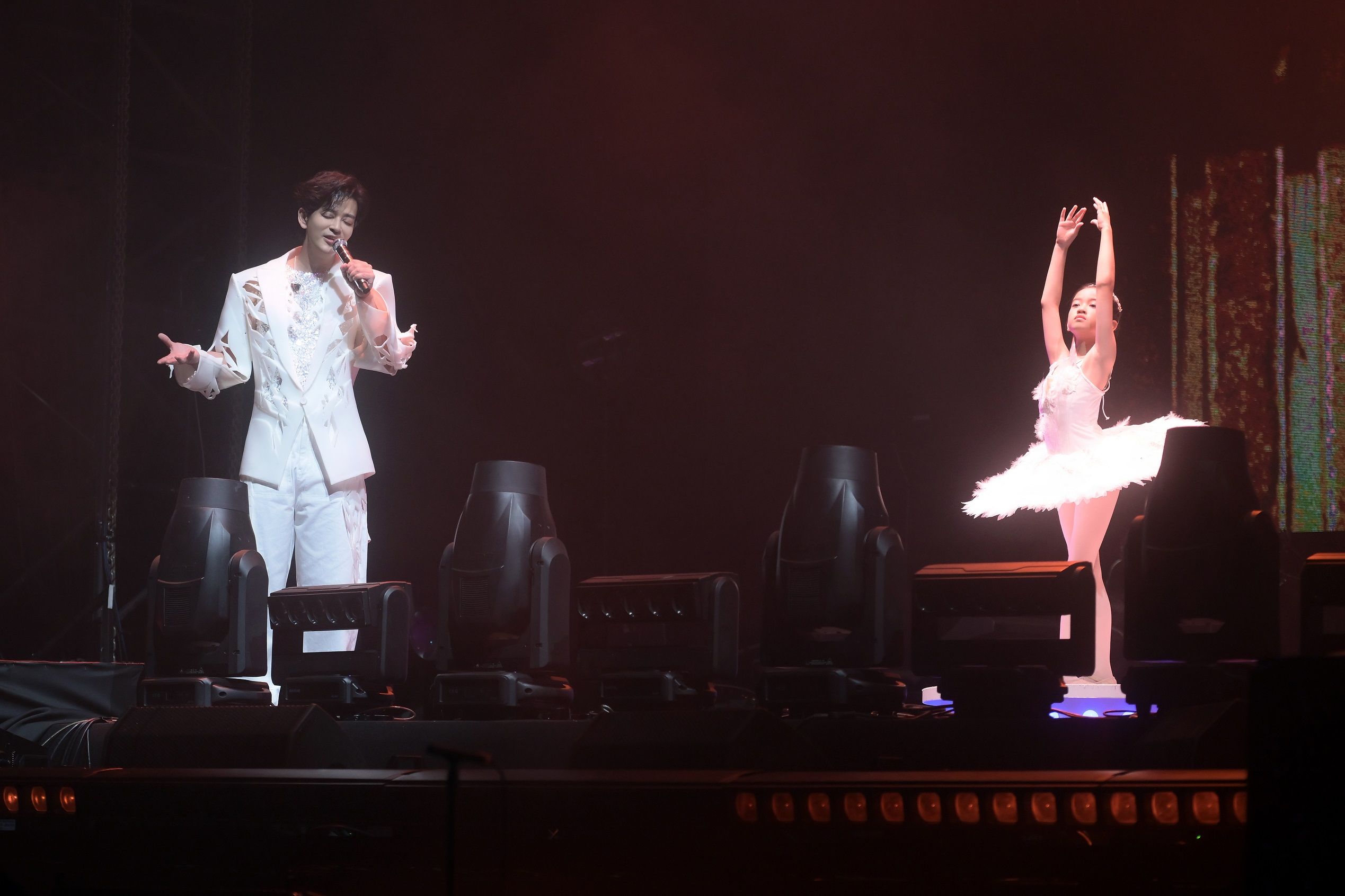 陳曉東出道30週年的巡演,日前在廣州開跑,陳曉東除了高唱〈心有獨鍾〉等經典情歌,兩位「前世情人」更大展才藝助攻,只見兩位女兒輪番秀鋼琴、芭蕾以及芭蕾等才藝,讓全場歡聲雷動,坐在台下的陳曉東媽媽也起立鼓掌叫好。陳曉東更為了女兒打了「100分」高分,他心疼地說:「她們為了這次的演出,從兩個月前就開始準備,而且練習的時候挺辛苦的,經常拉筋訓練要擺POSE ,直到上台前都還在練習!」