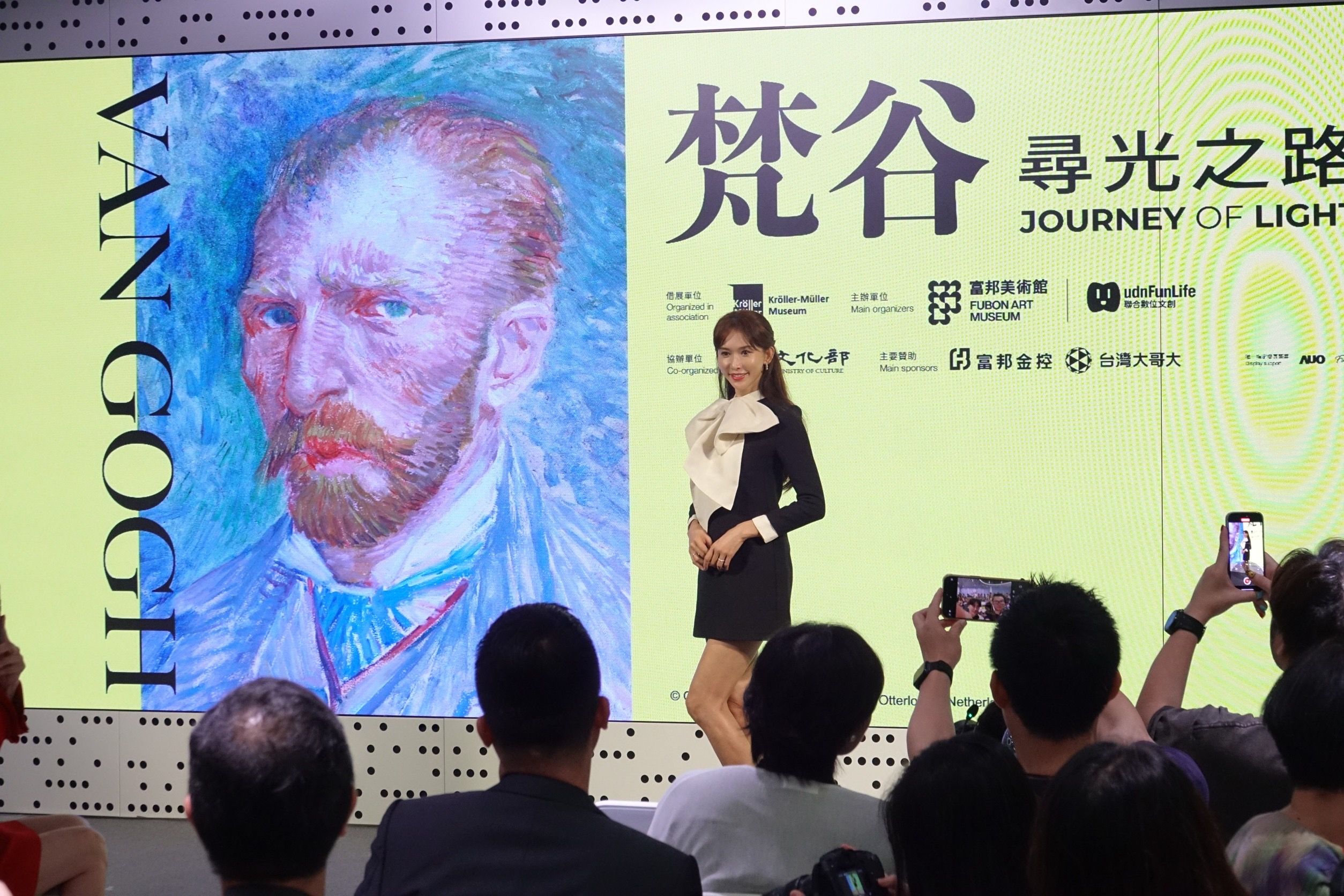 她也在記者會提到看到梵谷真跡十分感動,尤其大學教授曾教導她藝術作品的理解沒有對與錯,就是要用自己的語彙,去分析去感受,只有自己才知道,也喊話觀眾「親自用雙眼看這次的梵谷」。尤其別忘了掃碼聽她的免費語音導覽,強調「一定要聽完,會有彩蛋喔!」