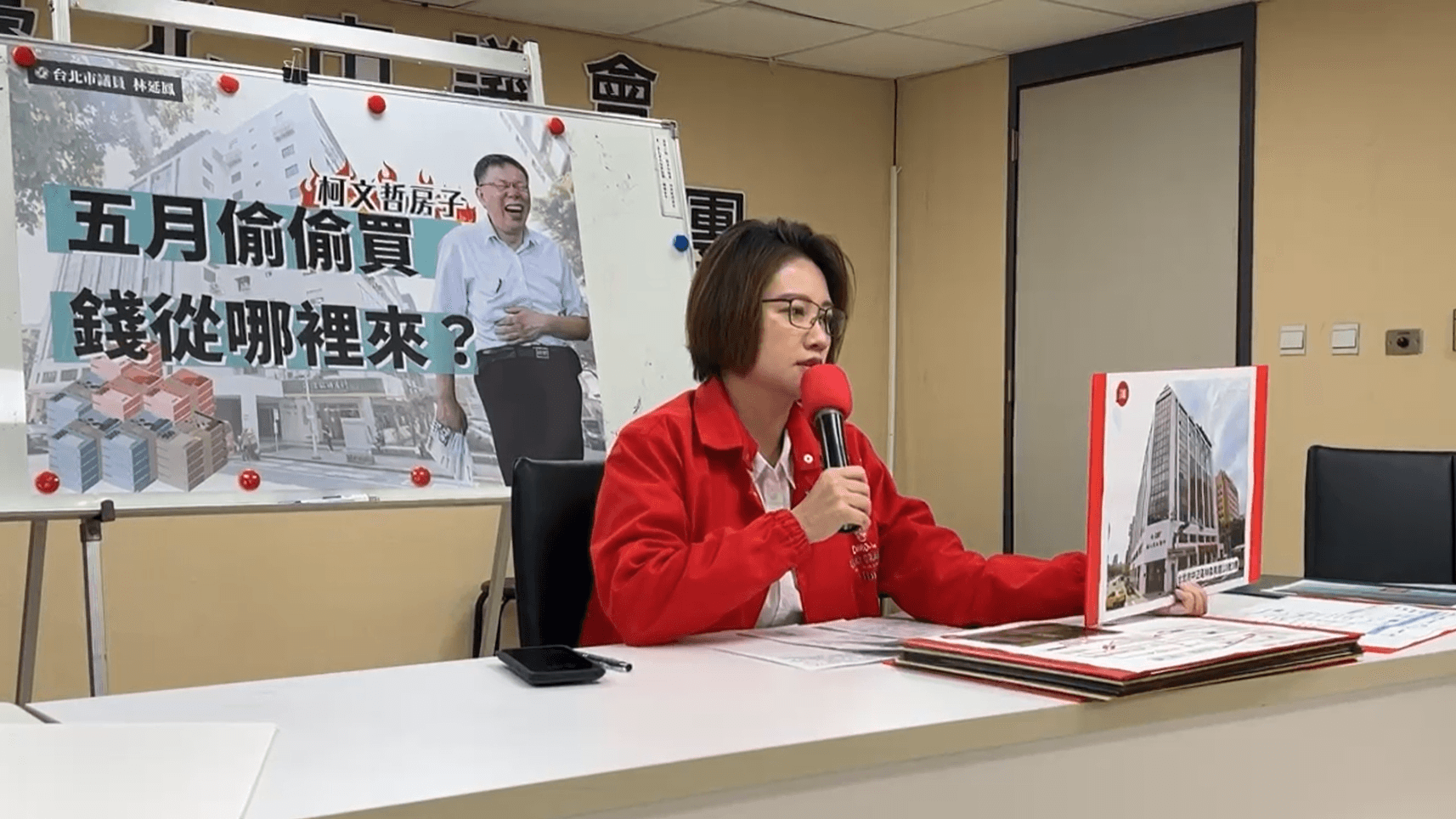 民眾黨陷入政治獻金假帳風波,黨主席柯文哲與市聯醫醫師陳佩琪,夫妻倆更因看房說法兜不攏而形象大傷,民進黨北市議員林延鳳今(26日)早召開記者會,爆料陳佩琪不只是「東看看西看看」,而是早在5月就用現金,買下台北市中正區一處商辦,就在立法院旁邊,質疑買房資金來源。