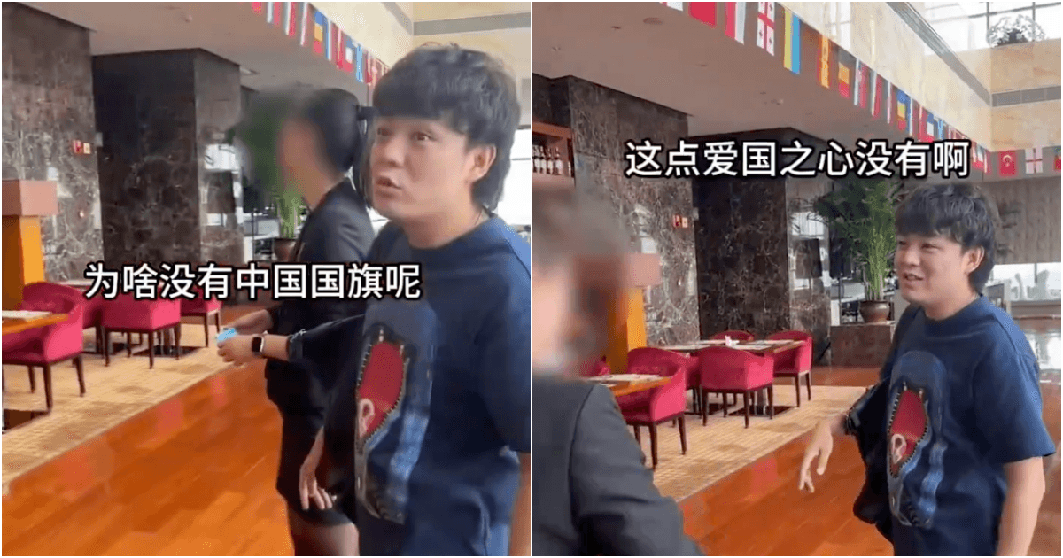 中國抖音網紅「勃勃不講理」,近日入住河北石家莊市的美國連鎖旅宿品牌「希爾頓酒店」,不過他發現飯店大廳懸掛許多國家的國旗,唯獨沒有掛上中國國旗,讓他大為不滿,立刻向飯店人員抗議,責問為何不掛上中國國旗。