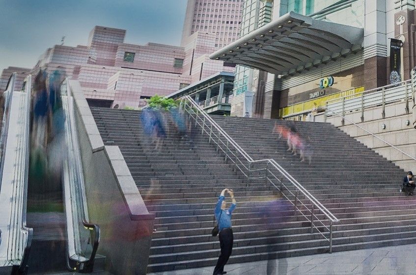 熱心網友解答其實這是最新拍攝台北101的方式,最先是一名女網紅將手機放在手扶梯台階,利用仰角恰好可以將她的身影與整棟101大樓拍進畫面,由於畫面構圖很適合分享在IG限動或照片分享,影片曝光後迅速流傳,引起許多外國遊客爭相模仿;不過卻引起民眾兩極反應,有人躍躍欲試也想拍拍看,認為有助促進觀光,但也有人批評這樣的行為危險又擾民。
