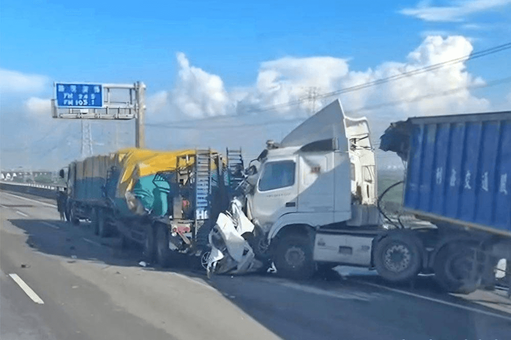 行經此處的用路人拍下現場慘況,只見一輛白色小客車,夾在聯結車和貨櫃車中間,車體已經徹底扭曲變形,已無法從外觀判斷車型。警消獲報趕往現場搶救,駕駛被救出時失去呼吸心跳,目前緊急送醫搶救中。