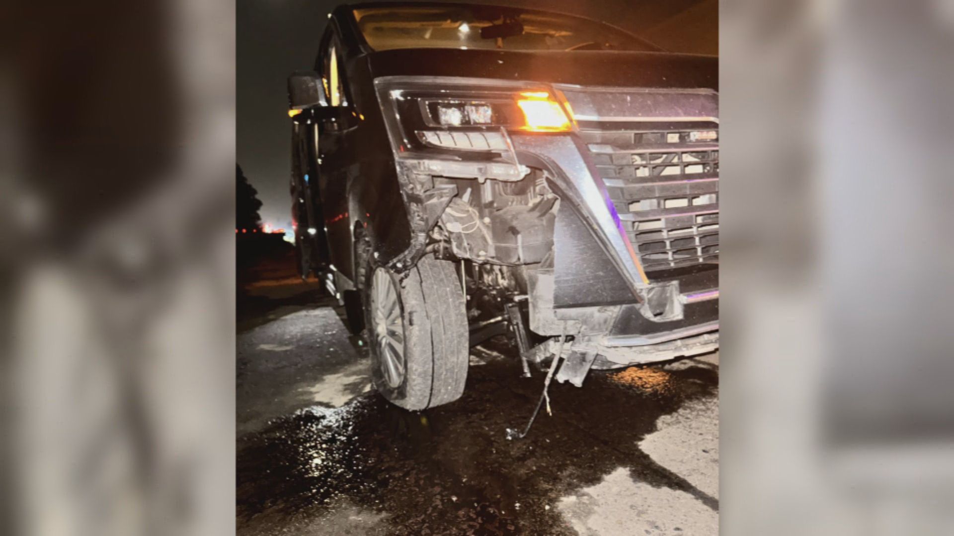 黃偉哲昨(12日)晚間在台南市區結束公務行程後,在返回位於新營的市長官邸途中,不料卻天外飛來橫禍,座車在行經國道1號時,撞上前方車輛掉落的100多公斤鐵箱,當時車速約110公里,車頭毀損嚴重,下方保險桿險些脫落,所幸座車未翻覆,也未被後車追撞,車上3人毫髮無傷。