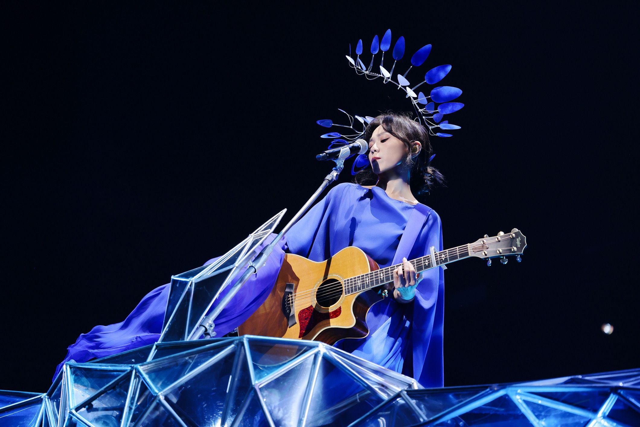 蔡健雅今(14日)晚在高雄巨蛋開唱,這場為時四年的 「Let’s Depart !」系列巡迴的最終站移師高雄,一萬個座位開票即秒殺,蔡健雅化身「月光女神」以一身全新絕美造型搭乘宇宙青鳥號氣勢登場的她,在一連唱了〈Blue Birds〉、〈失語者〉、〈Break down〉好歌後,難掩興奮地跟全場歌迷說:「高雄的寶貝們,我來了!」搭配開場「青鳥」概念、頭戴羽毛頭飾的她笑稱自己是「驕傲的孔雀」,還說:「覺得我今天美嗎?我今天是驕傲的孔雀,你們覺得像嗎?」讓全場報以熱烈掌聲。