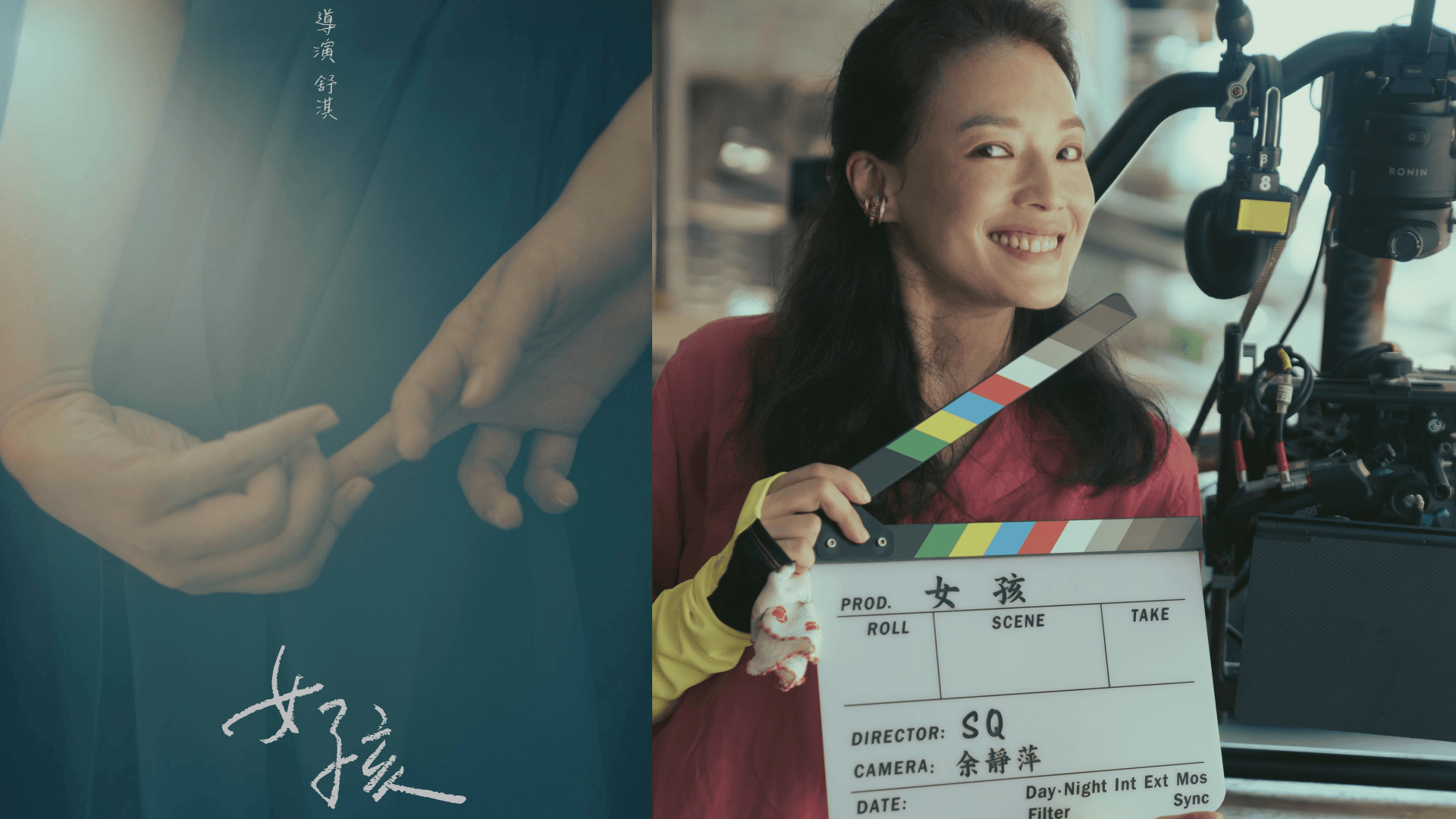 舒淇以《千禧曼波》、《非誠勿擾》、《最好的時光》、《刺客聶隱娘》等經典電影奠定國際級影后地位,演而優則導的她,將自己醞釀許久的原創故事,順利拍成生涯首部編導長片《女孩》,並邀來資深監製葉如芬共同合作。在今天釋出的概念海報,視覺上以女孩的手部特寫作為主要構圖,糾結纏繞著的手指有戲且神秘,充滿無限想像空間。該片預計2025年上映。