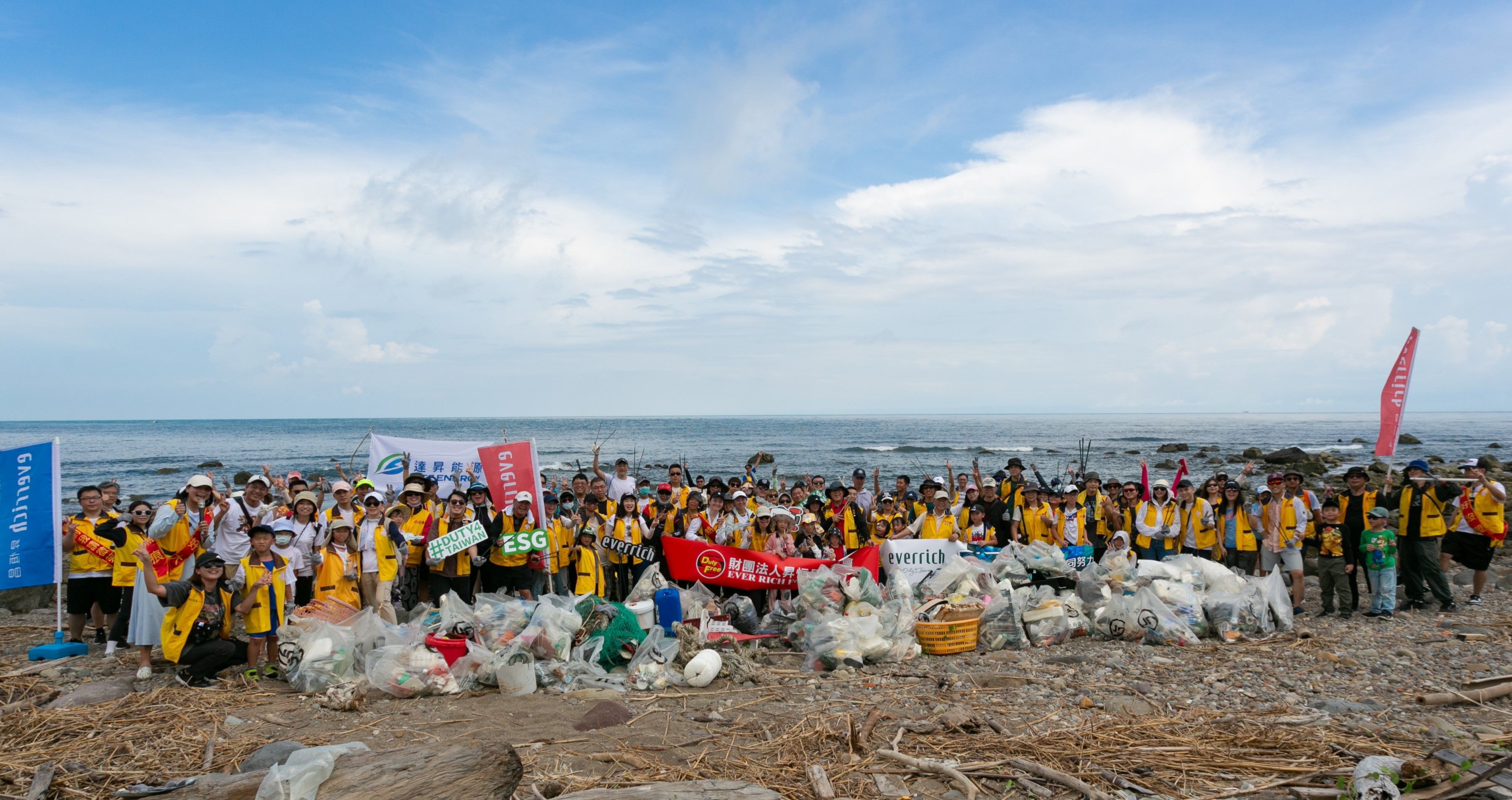 此次國際淨灘日活動昇恆昌免稅商店邀請員工、眷屬、消費者及30家合作廠商一同參與,大、小朋友頂著烈陽,彎腰撿拾塑膠、大型廢棄漁網,還有飄洋過海超過2000公里才來到臺灣的中國製玻璃啤酒罐、寶特瓶,一共清出343.6公斤垃圾。