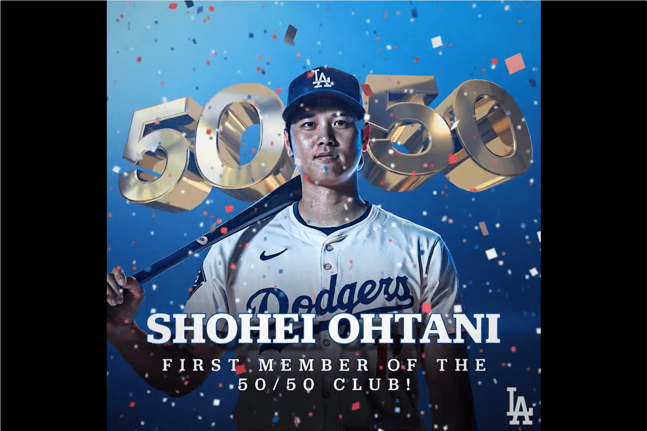 洛杉磯道奇隊對上邁阿密馬林魚,道奇隊以20:4收下季後賽門票,這場比賽,大谷翔平率先達成本季第51盜,第7局轟出左外野兩分彈,正式成為「50-50」俱樂部史上首位會員,轟動全場。