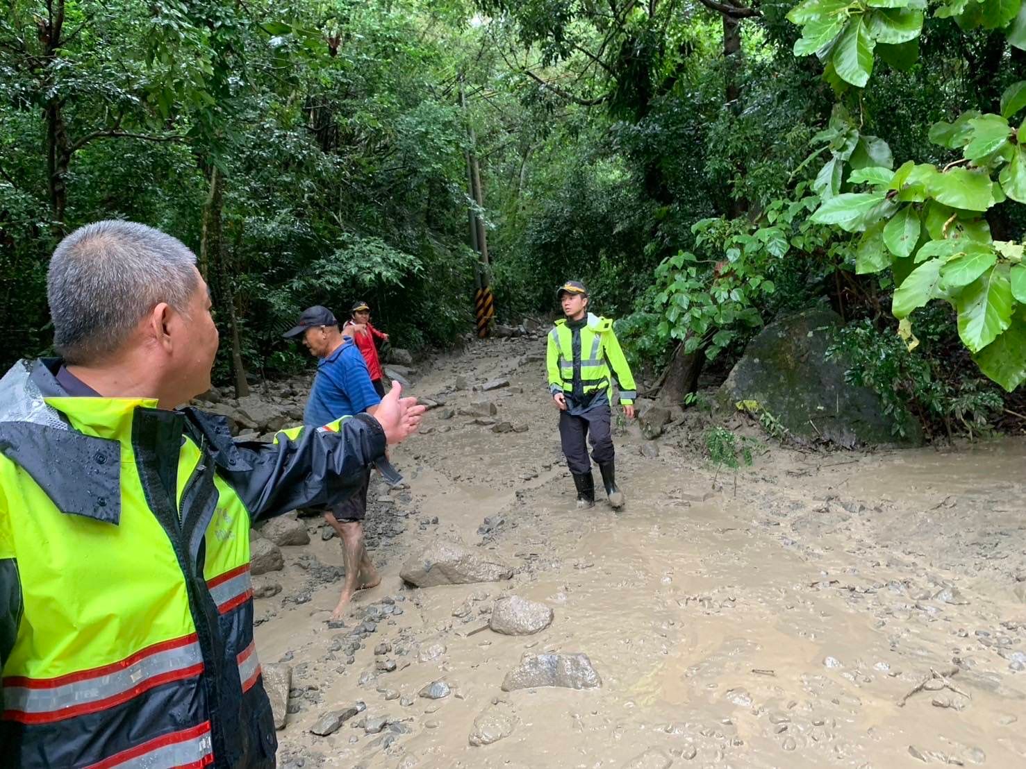 豪雨來襲,今(22)日14時37分許,高雄六龜區光明巷因受強降雨影響,造成土石流,警消獲報立即到場協助居民撤離,經撤離7人,無人員受困、全員平安。