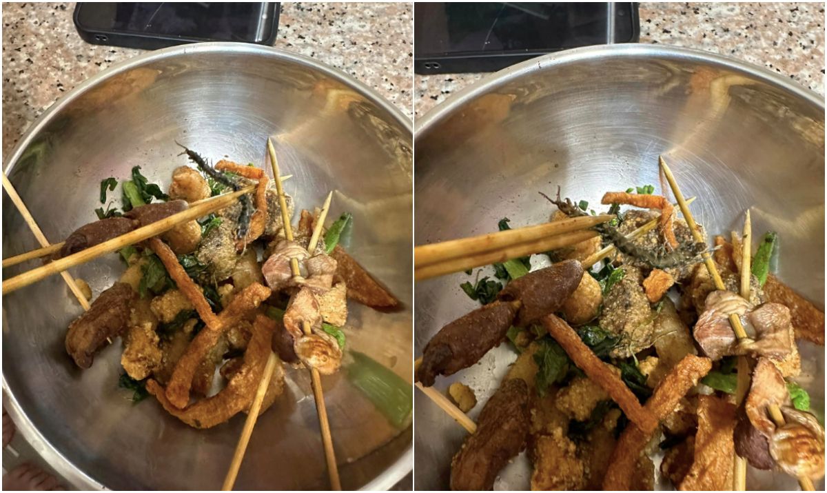 文章引來不少網友歪樓,「炸過的蜈蚣居然不會捲起來…納悶」、「為什麼你的特別豐富~」、「加碼~五毒」、「食補」、「一秒飛泰國,這可是泰國小吃!」不過原PO也在留言回應,發現的時候就不敢再吃,通通送進垃圾桶。