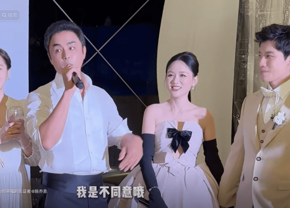 45歲女星陳喬恩2年前和小9歲大馬男友Alan(曾偉昌)登記,到近年才補辦浪漫海島婚禮,22日演藝圈好友都到蘭卡威當起伴郎、伴娘,明道不僅自己當起伴郎,兒子還是花童,婚禮上他也以好友身份致詞,卻突然語出驚人表示兩人剛在一起他不同意,讓一旁陳喬恩大笑肘擊,明道才解釋道,因為她太有錢怕被騙,現場笑成一片。