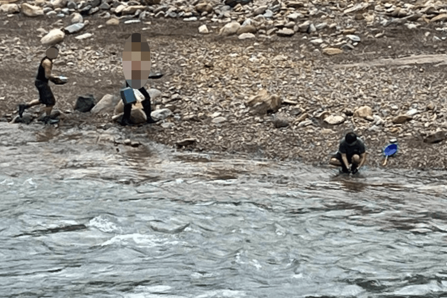3名男子今日上午帶著簡易淘洗工具,到員山子疏洪道上游約100公尺的基隆河邊「淘金」,由於中度颱風山陀兒正朝台灣靠近,對岸民眾見狀擔心溪水暴漲發生危險,趕緊報警處理。