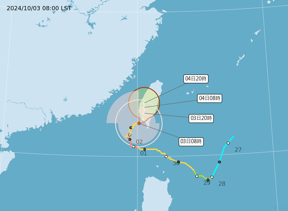 中颱山陀兒預計在今(3日)中午登陸,預測登陸後強度將持續減弱,根據中央氣象署下午1點公布的風雨預測,明(4日)有12縣市達到停班停課標準,不過是否會停班停課,要以各縣市政府公布為準。