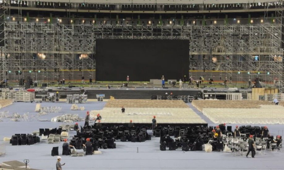 對此,蔣萬安今日出席國慶記者會時表示,會要求遠雄今日以前,將影響大範圍面積以及國慶晚會舉辦的區域,盡速完成改善,整體希望遠雄能夠兌現承諾,在10月底前全面完成;李四川則表示,有關漏水部分,這幾天已全力修補,國慶晚會座位已全部整理完畢,李坦言,大雨來的時候漏水,從哪個地方滲進去,說實在是比較難知道,但有漏下來的部分已經全部都整理好,也相信明日是好天氣。