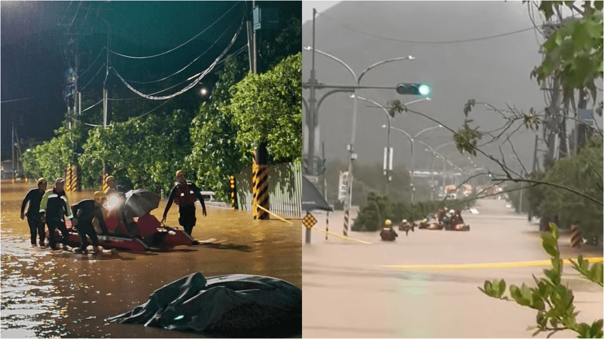 颱風山陀兒襲台,雖然已轉為熱帶性低氣壓,但仍為北海岸帶來致災性暴雨,導致新北市金山、萬里及淡水等區域傳出淹水災情,部分連外道路中斷。對此,台大醫院金山分院院長蔡兆勲昨(4日)深夜在臉書分享,醫護同仁在淹水情況下,仍冒險搭橡皮艇到醫院值班。