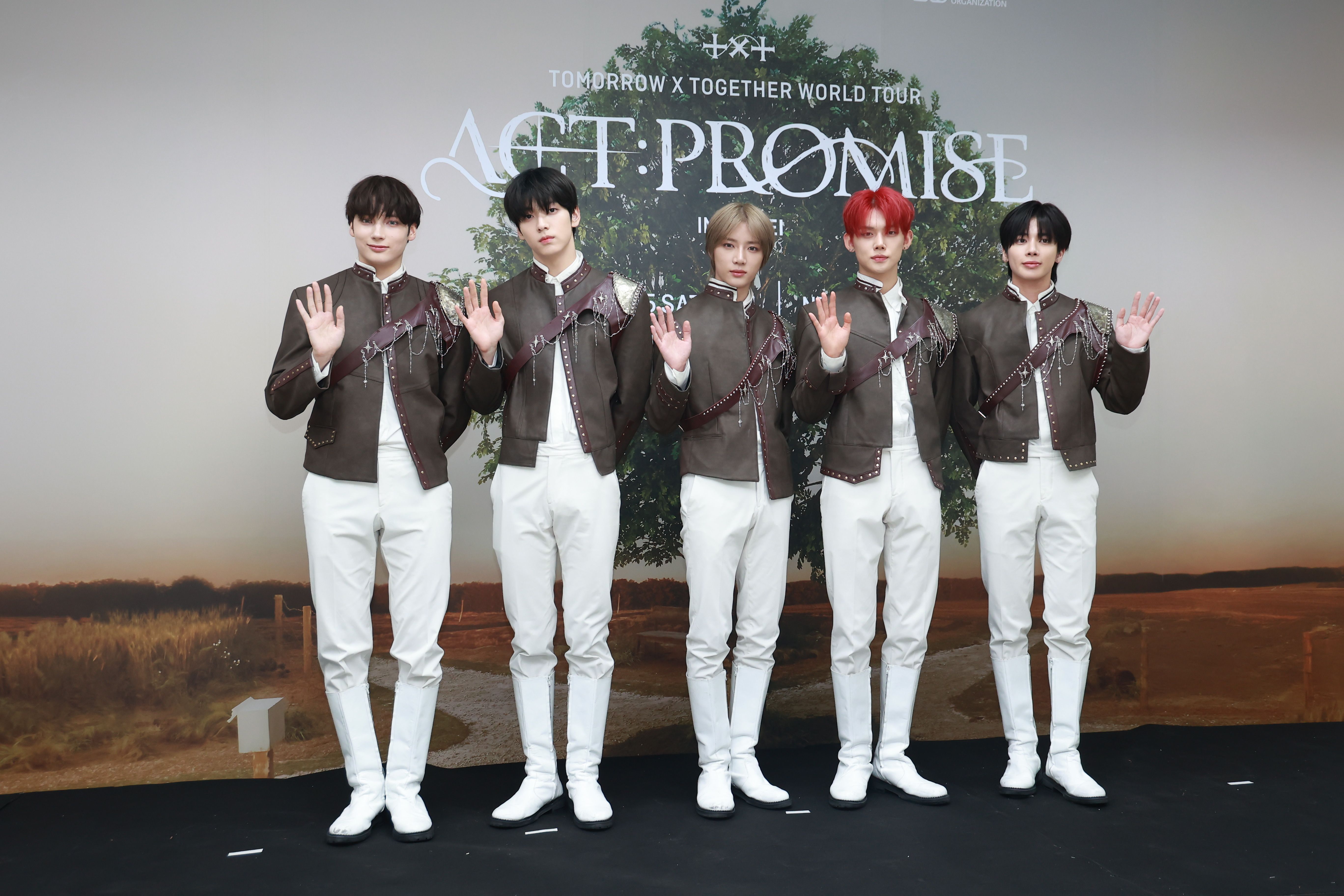 TOMORROW X TOGETHER成軍五年,由SOOBIN(秀彬)、YEONJUN(然竣)、BEOMGYU(杋圭)、TAEHYUN(太顯)、HUENINGKAI(休寧凱)5位成員組成,全新世巡「ACT : PROMISE」5月自首爾開跑,本週末來到林口演出,是他們出道以來二度訪寶島開唱。上次他們訪台時曾造訪淡水,休寧凱說當時會去淡水是因為很多知名電影都曾在這拍攝,也在淡水吃了許多美味小吃。