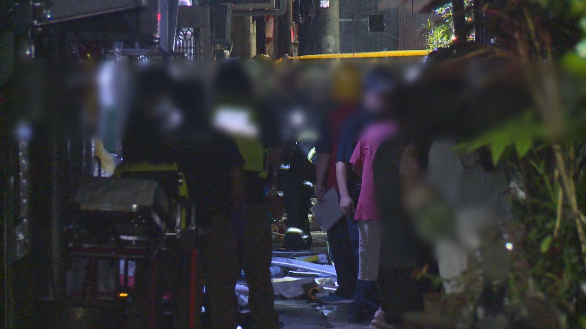 救護人員推著躺在擔架上的傷患,一路小跑步,送上救護車,馬路上還聚集了許多被消防人員疏散出來的居民,有民眾扶著年邁的長輩,一步一步走出巷子,大家神情焦急,不斷東張西望。