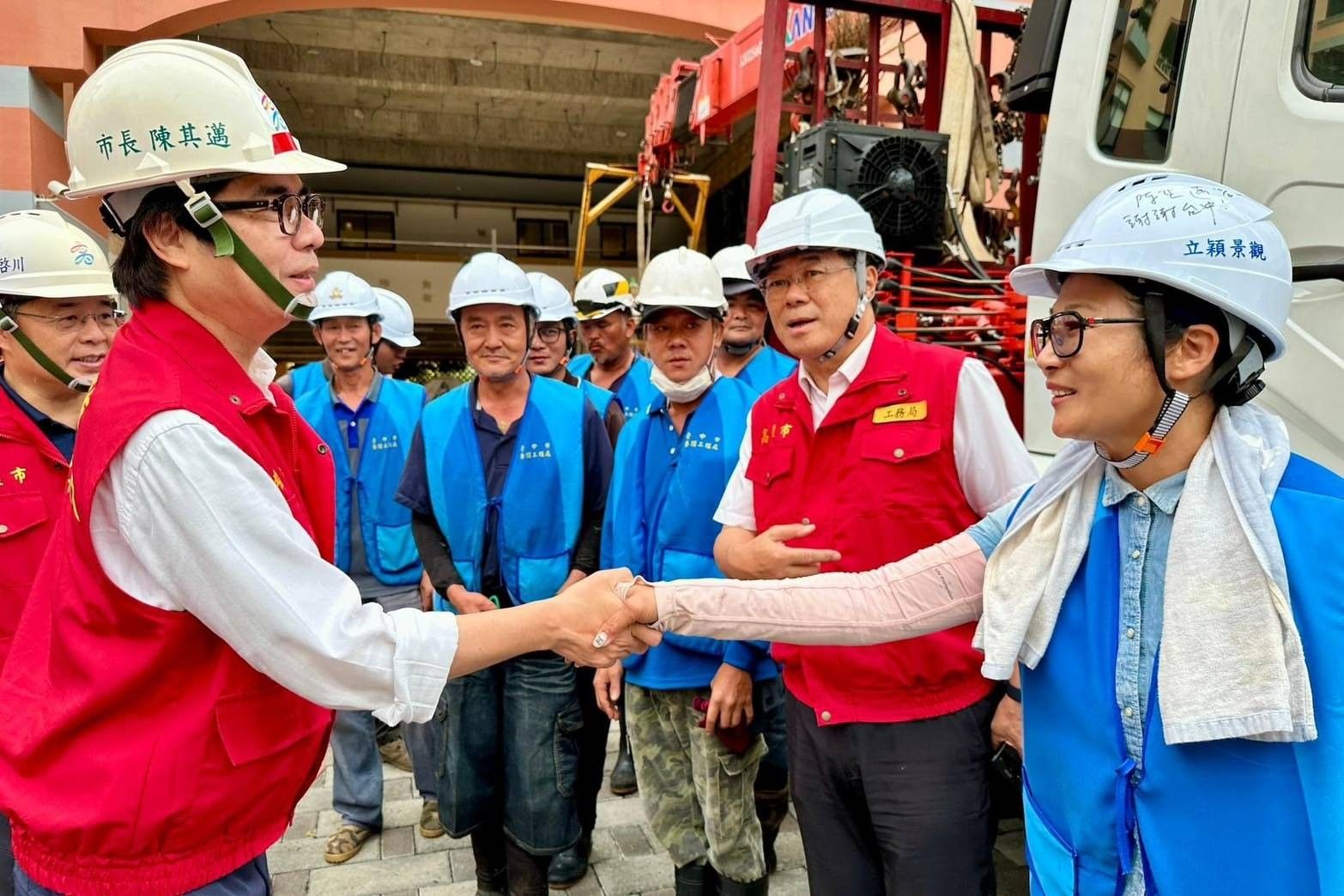 山陀兒颱風重創高雄,外縣市紛紛跨區馳援協助災後重建,高雄市長陳其邁今(8日)透露,前天在福山國小視察時碰到台中的救援隊伍,為了表達感謝,在搶修人員頭盔簽下「謝謝台中」,並拍照傳給台中市長盧秀燕,「這一次各縣市都給予我們高雄市最大的一個協助,高雄市民都非常感激、會記在心裡」。
