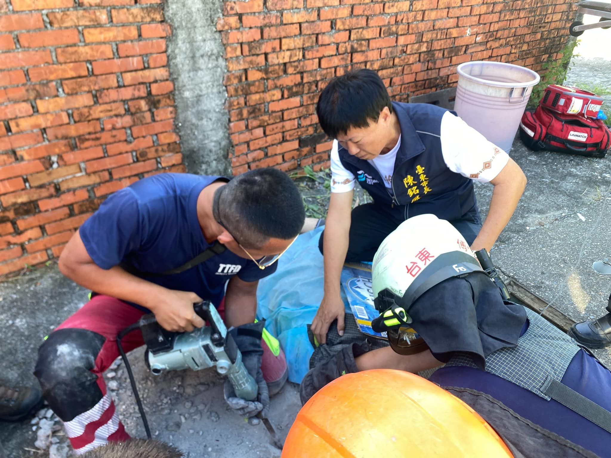 重陽節將至,各地方政府開始發放相關禮金、禮品,今(8日)早台東市富岡里卻傳出一樁意外,一名80歲周姓老翁準備排隊之際,卻因身分證不慎掉落水溝,趴地伸手撈取時,整隻右手卻卡死,路過民眾發現異樣後報案,最終用了破壞工具才將周翁救出,所幸沒有大礙僅皮肉傷。