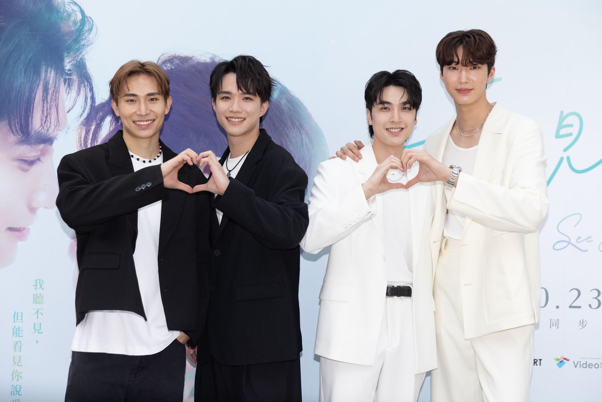 《看見愛》演員群艾雨帆(左起)、李悠、金雲、林宇、林家佑、林詠傑、陳柏文今為戲宣傳。(大鴻藝術BIG ART提供)林珮瑜這次描繪富三代與聾人看護的愛情故事,也身兼製作人角色,她提及故事出發點其實來自於導演姜秉辰,他表示:「我的叔叔是聾人,他所遭遇的困境是我從小看到大的,三年前我們討論到用聾人的角度來說故事,愛細潤無聲,除了用語言表達外,這世界上還有很多還有很多愛。」
